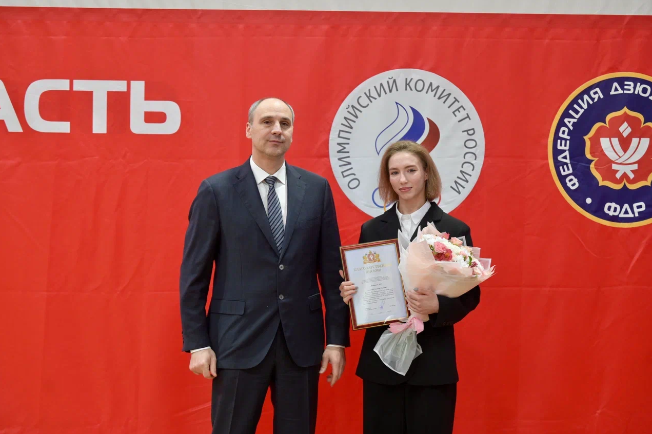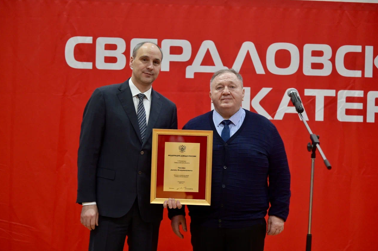 Президент Федерации дзюдо Свердловской области Сергей Викторович Воробьёв торжественно вручил Губернатору Свердловской области Денису Владимировичу Паслеру поздравительную плакетку за подписью президента Федерации дзюдо России Сергея Игоревича Соловейчика. Эта награда стала признанием весомого вклада региона и лично Губернатора в развитие дзюдо, поддержку спортивной инфраструктуры и молодых спортсменов.